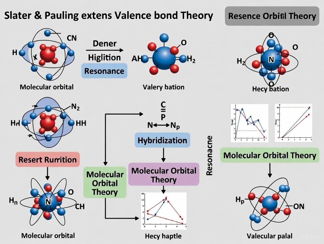 The extensions of Valence Bond Theory by Slater and Pauling provided an indispensable, chemically intuitive framework that demystified molecular structure and bonding. Despite being overshadowed by Molecular Orbital theory for decades, the core concepts of hybridization and resonance have proven robust, now being validated and quantified by modern computational analyses like NBO. The ongoing renaissance of VB theory, powered by new algorithms, offers a powerful complementary perspective to MO-based methods. For biomedical research, this renewed capability is crucial for modeling enzyme-active sites, drug-receptor interactions, and sophisticated intermolecular forces like hydrogen bonding with unparalleled clarity, promising deeper insights for rational drug design and biomolecular engineering.