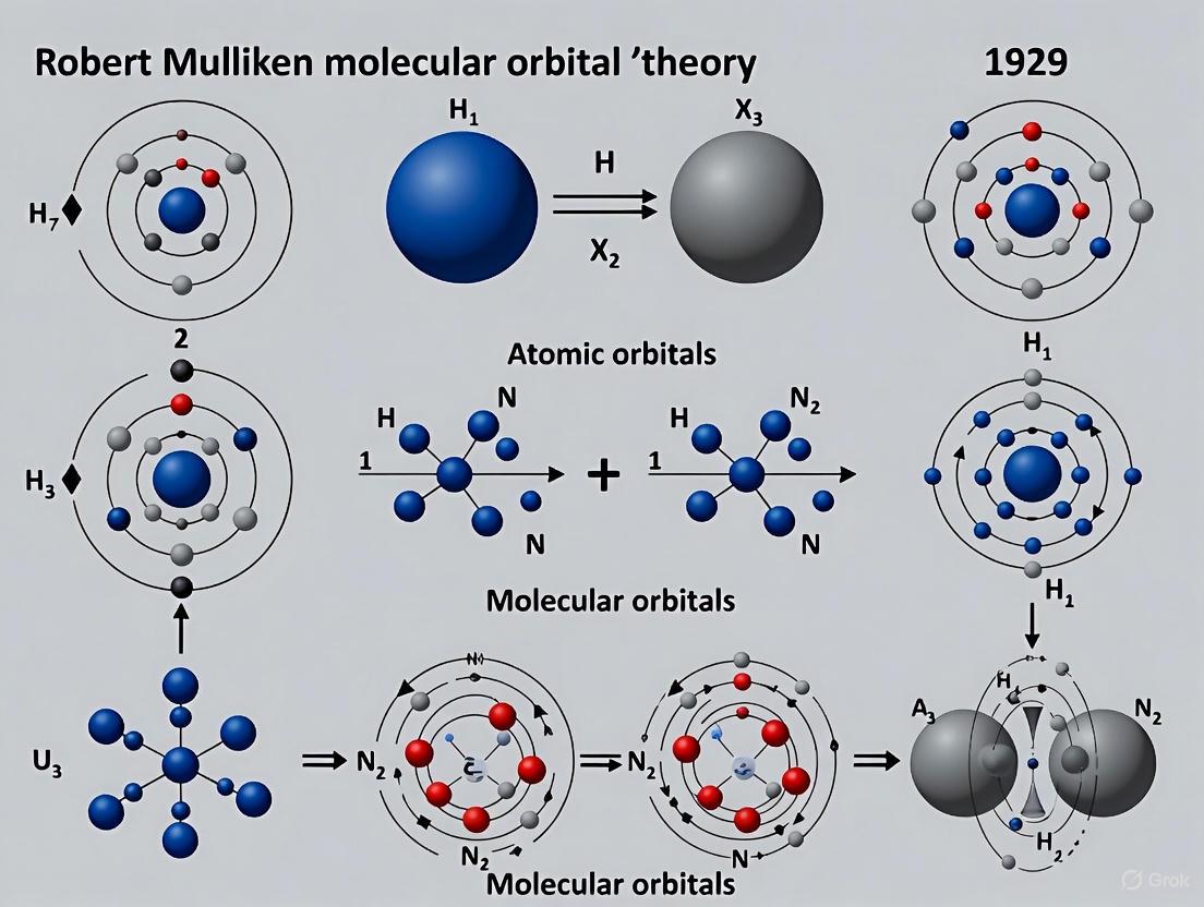 This article explores the foundational development of Robert S. Mulliken's Molecular Orbital (MO) theory, a cornerstone of modern computational chemistry. Tracing its origins from the 1920s to its maturation, we detail the key methodological principles like Mulliken Population Analysis that translate quantum calculations into actionable chemical insights. For researchers and drug development professionals, the article provides a critical comparison with Valence Bond theory, addresses computational challenges and their solutions, and validates the theory's power through contemporary applications in molecular modeling and rational drug design, particularly in understanding interactions like halogen bonding critical for pharmaceutical efficacy.