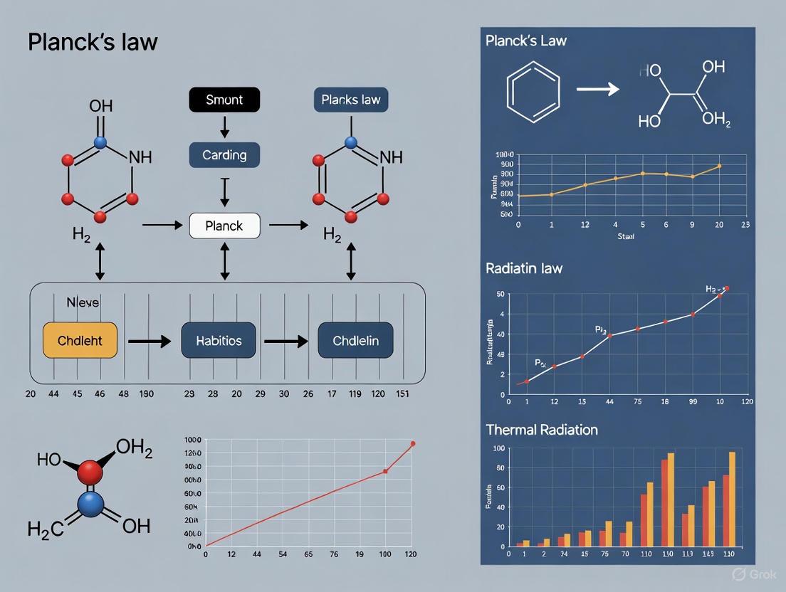 Modern thermal photonics research extends Planck's insights to engineer thermal radiation with structured materials, achieving phenomena like super-Planckian emission that violate traditional blackbody limits [7] [8]. These advances open new possibilities in energy conversion, thermal management, and nanoscale thermal design. As researchers continue to probe the boundaries of Planck's law, particularly in quantum and non-equilibrium regimes, the blackbody problem remains a vital touchstone for understanding the interaction between light and matter at fundamental scales.