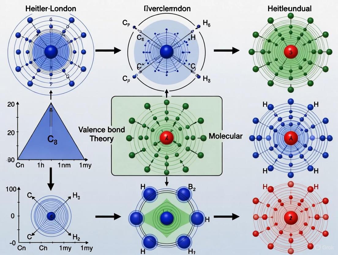 The modern renaissance in valence bond theory, propelled by advanced computational methods and new theoretical formulations, has systematically addressed these early shortcomings. This revival is not merely a return to an old idea but a significant reformation, demonstrating that VB theory, when applied with modern sophistication, is equally valid and often provides more chemically intuitive insights than its MO counterpart [13] [81]. This guide details how contemporary VB corrections have refined the original Heitler-London model, offering researchers powerful tools for understanding electronic structure in complex systems, including those relevant to drug development and materials science.