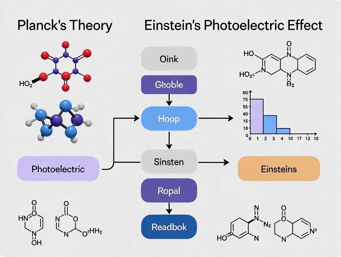 The dawn of the 20th century witnessed a paradigm shift in physics with the introduction of quantum concepts, fundamentally challenging the classical understanding of light and energy. At the forefront of this revolution were Max Planck and Albert Einstein, whose seminal contributions provided complementary yet distinct foundations for quantum mechanics. Planck's theoretical work on blackbody radiation introduced the fundamental constant h, quantifying energy quantization. Shortly thereafter, Einstein's explanation of the photoelectric effect demonstrated the physical reality of quantized energy packets, thereby establishing the principle of wave-particle duality. This comparative analysis examines the direct impact of these two pivotal contributions, contrasting their theoretical frameworks, experimental validations, and enduring legacies in modern scientific research.