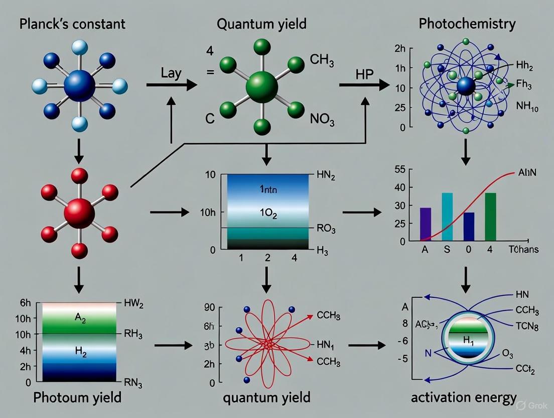 As photochemistry continues to evolve, Planck's quantum theory remains the foundational framework for understanding and optimizing these complex light-driven processes. Future photocatalyst design must integrate considerations across multiple quantum efficiency domains—from initial photon absorption to productive intermediate separation—to achieve the sophisticated control necessary for sustainable chemical synthesis and energy applications.