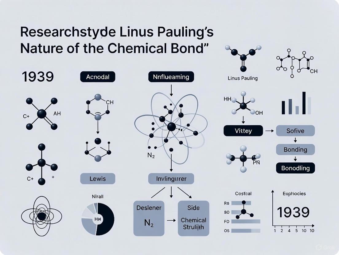 The publication of Linus Pauling's The Nature of the Chemical Bond in 1939 represents a watershed moment in the history of chemistry, establishing a conceptual framework that would dominate structural chemistry for decades. Pauling's genius lay in his ability to bridge the quantum theoretical descriptions emerging from physics with the practical needs of chemists, providing a physical foundation for Gilbert Lewis's classical electron-pair bond model [2]. His introduction of resonance theory, orbital hybridization, and the electronegativity scale provided chemists with powerful predictive tools for understanding molecular structure and reactivity. While these concepts have evolved and faced scrutiny over time, they remain foundational to chemical reasoning, particularly in pharmaceutical research where predicting molecular behavior is paramount. Pauling's work was characterized by a willingness to make conceptual leaps—such as proposing that quantized atomic orbitals could "mix" to form new hybrids—even when the complete mathematical justification was not yet fully refined [10]. This article examines how Pauling's cornerstone concepts have withstood the test of time, incorporating modern computational validations and their critical applications in drug development.