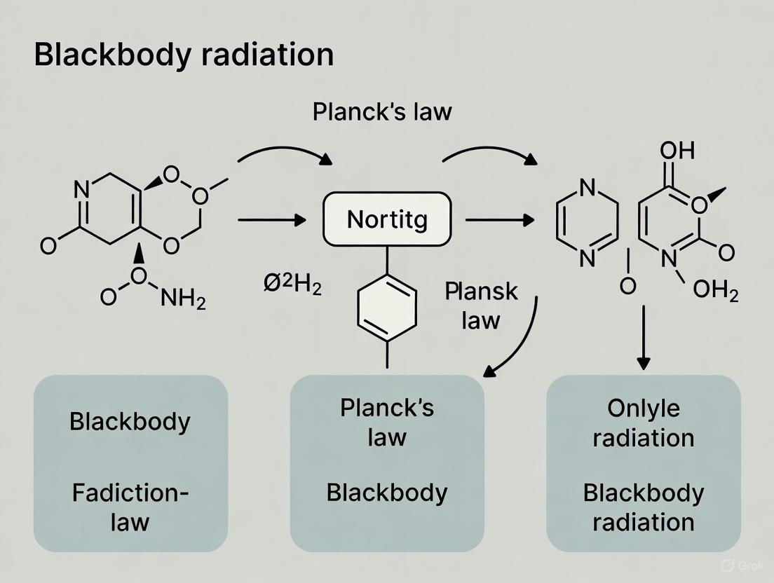 The study of blackbody radiation was pivotal at the turn of the 20th century, as classical physics failed to explain the observed spectral distribution of radiation from heated cavities. This failure, particularly the "ultraviolet catastrophe" predicted by the Rayleigh-Jeans law, led directly to Max Planck's revolutionary hypothesis of energy quantization, laying the foundation for quantum mechanics [5] [6]. Planck proposed that the oscillating charges in the cavity walls could only gain or lose energy in discrete chunks, or quanta, with energy (E = h\nu), where (h) is Planck's constant and (\nu) is the frequency of radiation [6]. This quantum hypothesis was the key to deriving the correct mathematical formula for the blackbody spectrum, cementing the inextricable link between Planck's law and blackbody research.