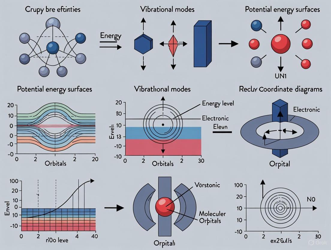 This separation of timescales is mathematically expressed through the molecular Hamiltonian. The full Hamiltonian incorporates terms for both electronic and nuclear kinetic energies, along with all potential energy contributions from electron-electron, electron-nuclear, and nuclear-nuclear interactions [14] [20]. The BO approximation allows this complex Hamiltonian to be separated into electronic and nuclear components, significantly reducing computational complexity while maintaining physical relevance for most ground-state molecular systems [14].